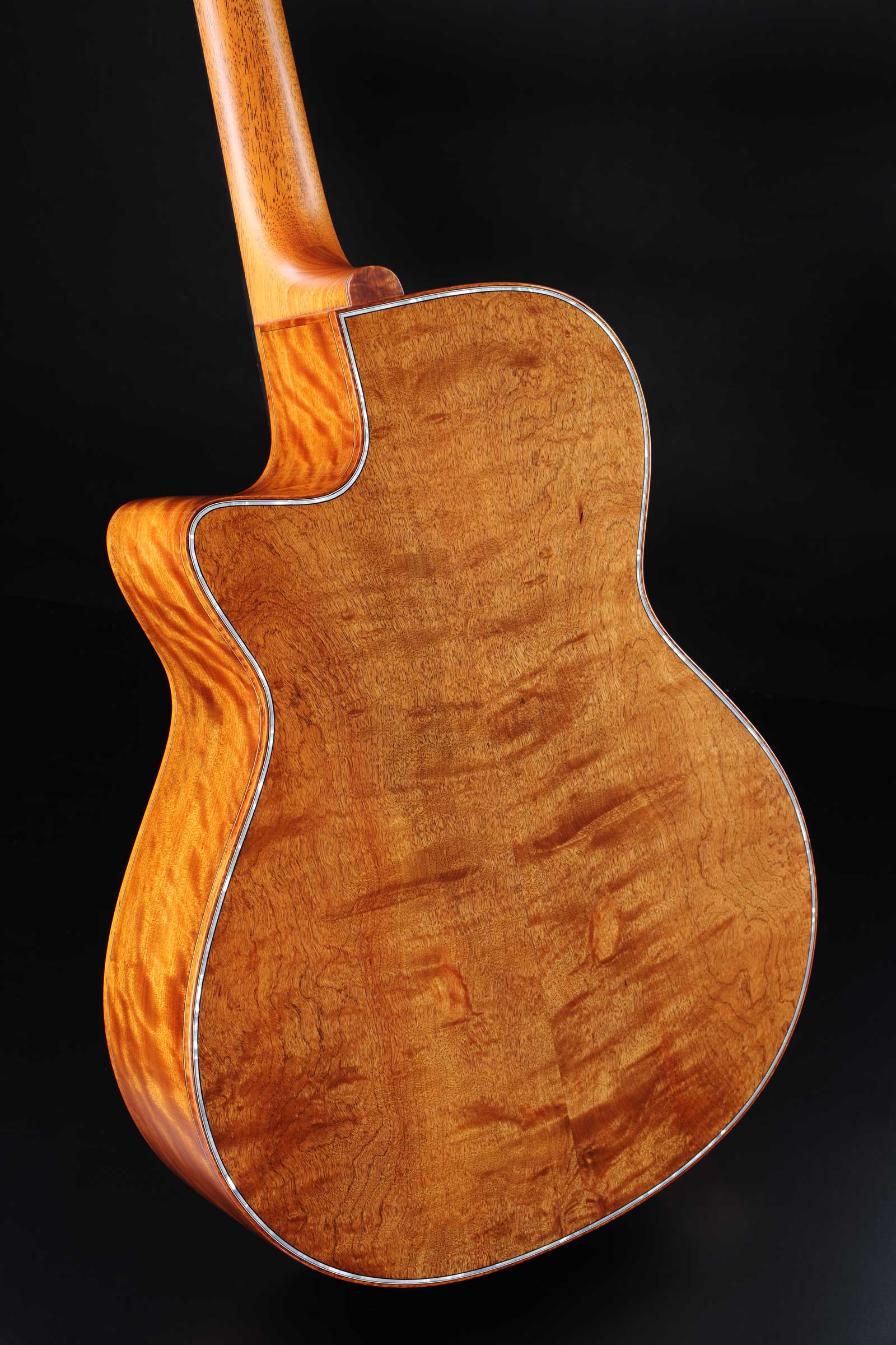 The neat grain of this wood is reminiscent of traditional Japanese handcrafts. The Small Semi Jumbo body maximizes the characteristics of this wood.